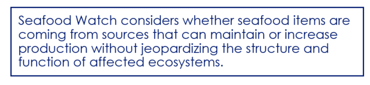 Seafood Watch a adopté une approche innovante en matière de durabilité en créant un système de recommandation basé sur un modèle de « feux de signalisation ». L’organisme vérifie si les produits de la mer proviennent de sources qui peuvent maintenir ou augmenter la production sans mettre en péril la structure et la fonction des écosystèmes concernés. Ils évaluent l’impact environnemental de la production des produits de la mer, élaborent un rapport scientifique révisé par des pairs avant de fournir un classement simplifié par couleur : le vert pour les meilleurs choix, le jaune pour les bonnes alternatives ou le rouge pour les produits qui devraient être évités.
